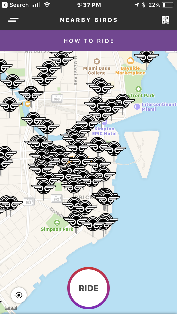 On June 1st, I spotted another electric scooter. This one looked like a privately owned scooter, more sleek with a sober matte black color. A block away, there were 3 more, perfectly lined up right next to the Tenth Street Promenade Metromover Station, a couple more in Mary Brickell Village, all with the word BIRD on them… “wait a minute” I said in my mind as I realized it had begun!...